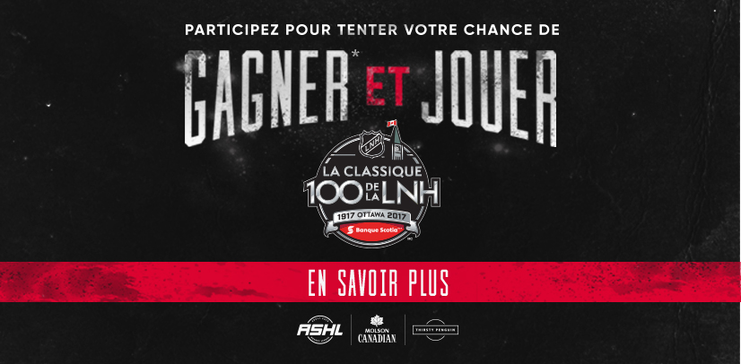 C’est vrai, 36 joueurs de l’ASHL venant de tout partout au Canada auront le voyage d’une vie cet automne, alors qu’ils vivront la 2017 Scotiabank NHL100 Classic™, à Ottawa.